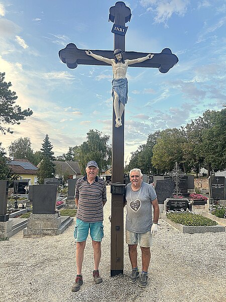 Die Mitglieder des ÖKB Wilfersdorf-Hobersdorf sanierten das Friedhofskreuz in Wilfersdorf. Damit ist es jetzt wieder im besten Zustand.