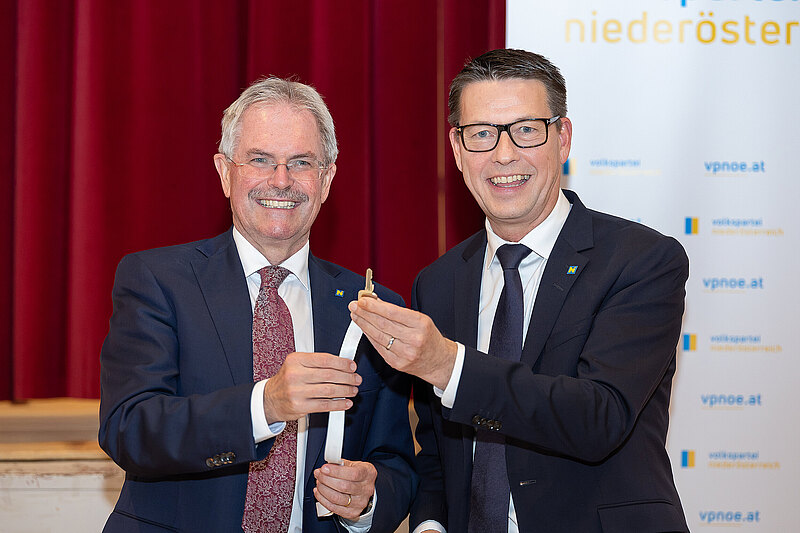 Mistelbach, 18.10.2025 - Nach einem Vierteljahrhundert an der Spitze der Volkspartei im Bezirk Mistelbach hat Karl „Carlo“ Wilfing beim Bezirksparteitag der VP Mistelbach den Vorsitz übergeben. Seit dem 1. März 2000 leitete er die Bezirksorganisation und prägte in diesen 25 Jahren die Entwicklung des Bezirks und der gesamten Region maßgeblich mit. Mit seiner Wahl zum Landesobmann der NÖ Senioren im Sommer 2025 ist für Wilfing nun der Zeitpunkt gekommen, die Verantwortung für die Volkspartei im Bezirk Mistelbach in jüngere Hände zu legen. Die Delegierten wählten den langjährigen Abgeordneten des Bezirks Mistelbach – und nunmehrigen Klubobmann Kurt Hackl – zu seinem Nachfolger.